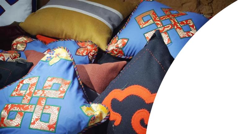 隨著時(shí)代的發(fā)展,江孜氆氌編織技藝面臨品種單一、產(chǎn)量低、從業(yè)人員銳減且老齡化趨勢(shì)明顯等問題。當(dāng)?shù)卣e極采取行動(dòng),特設(shè)非物質(zhì)文化遺產(chǎn)保護(hù)專項(xiàng)資金,并創(chuàng)建了非遺工坊,依托各類非遺代表性項(xiàng)目的傳承人,精心培育本土手藝人群體。藏袍、藏帽、圍巾、披肩、靠墊、抱枕等多樣化的產(chǎn)品隨之誕生,不僅具有實(shí)用性,還兼具藝術(shù)性和民族特色。加上設(shè)計(jì)師的“助力”,將傳統(tǒng)與現(xiàn)代元素融合,讓江孜協(xié)瑪氆氌產(chǎn)品更具時(shí)尚感和現(xiàn)代氣息。