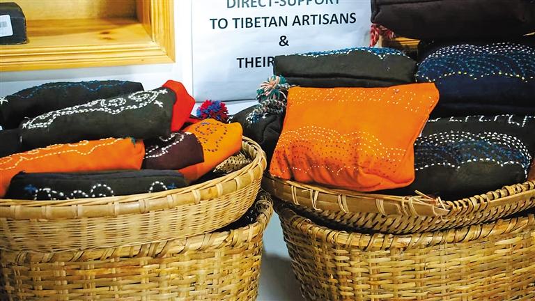 記者來到位于拉薩市八廓街內(nèi)的卓番林,一件件色澤鮮艷、美觀精致的編織物品呈現(xiàn)在眼前。毛毯、錢包、單肩包、抱枕等物品,融入了傳統(tǒng)的氆氌花紋和編織方式,加上獨(dú)特的花紋和設(shè)計(jì),不僅保留了西藏文化的精髓,還賦予了產(chǎn)品新的活力。