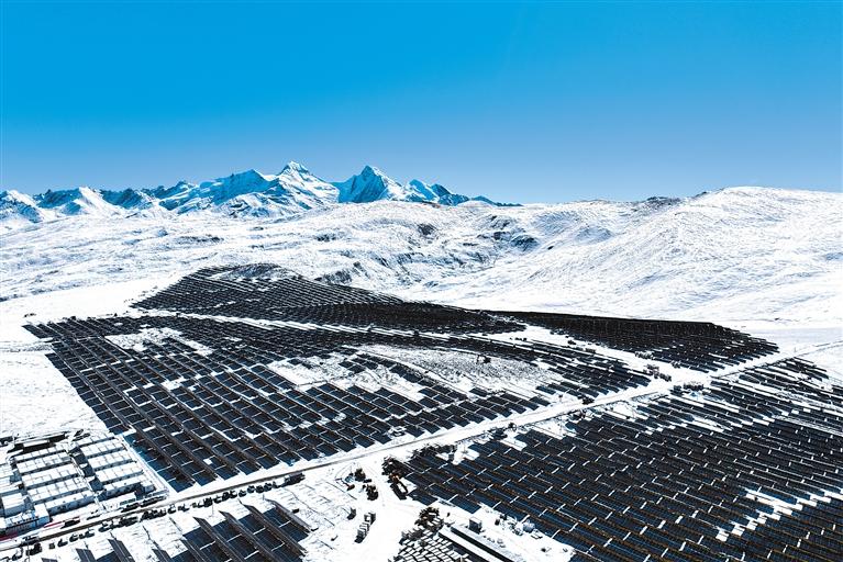 圖為華電西藏才朋光儲二期項(xiàng)目光伏場區(qū)全景一覽。 記者 袁海霞 鄭璐 攝