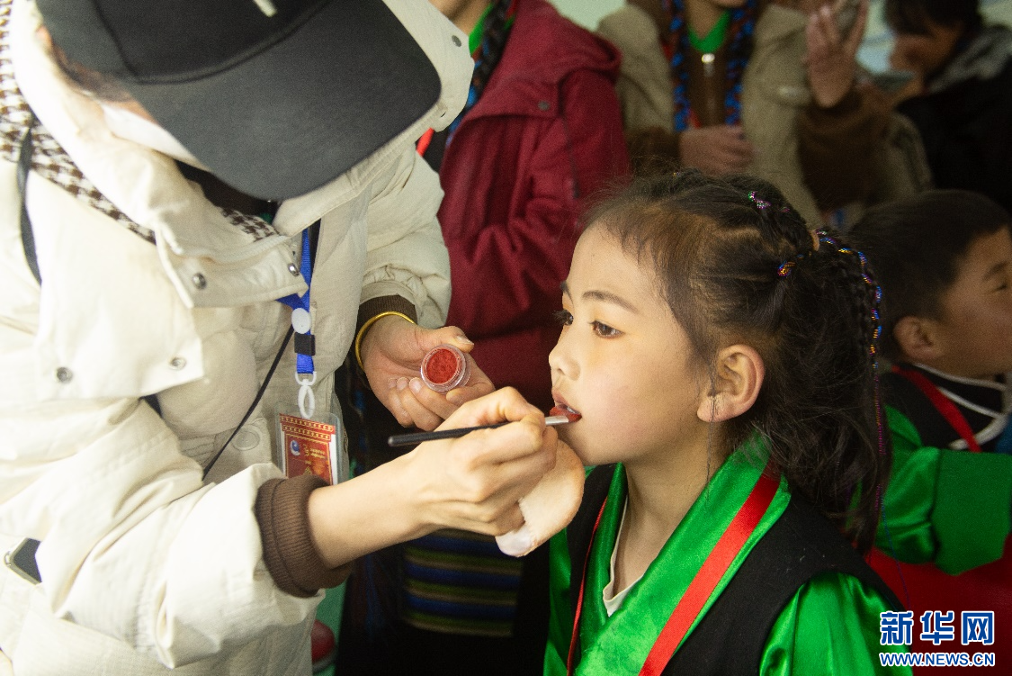 演員次旺拉姆在后臺補(bǔ)妝(2月14日攝)。新華網(wǎng)發(fā) 達(dá)瓦拉姆 攝