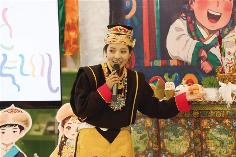 貢覺卓瑪正在給學(xué)生們講解藏歷新年民俗。