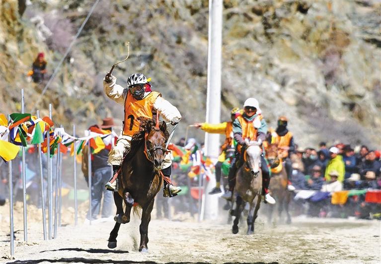 3月19日至20日,墨竹工卡縣甲瑪鄉(xiāng)龍達(dá)村舉辦了盛大的賽馬比賽。來(lái)自全區(qū)各地的276匹駿馬齊聚一堂,為當(dāng)?shù)厝罕姭I(xiàn)上了一場(chǎng)精彩紛呈的視覺(jué)盛宴。