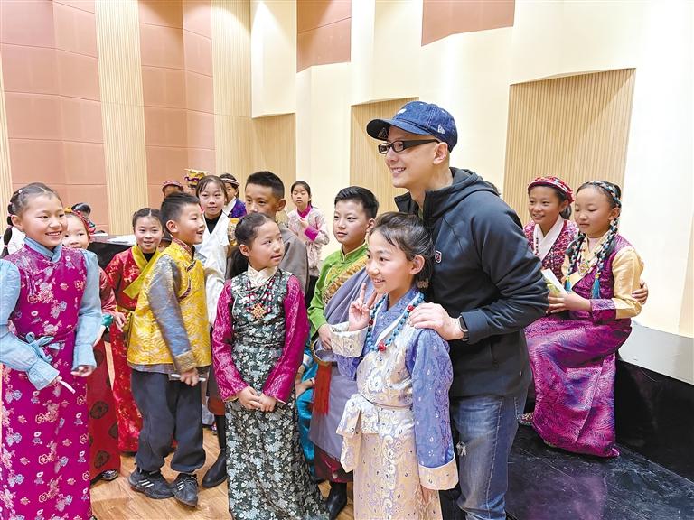 文藝志愿者與西藏珠峰少年合唱團開展暖心結對幫扶。 (圖片由自治區(qū)黨委宣傳部提供)