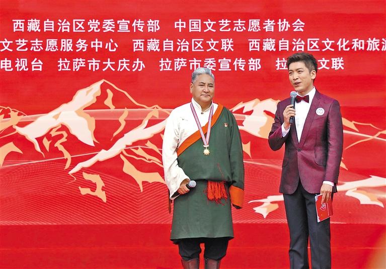 5月23日,在中國文藝志愿者服務日到來之際,由中國文聯(lián)、西藏自治區(qū)黨委宣傳部、中國文藝志愿者協(xié)會共同主辦的“與人民同行”慰問演出在西藏會展中心廣場隆重舉行。這場慶祝西藏自治區(qū)成立60周年的文藝盛宴,在歌舞《鼓舞西藏》激昂的節(jié)奏中拉開帷幕。