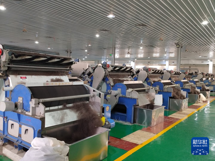 5月30日,西藏圣信工貿(mào)有限公司生產(chǎn)車間的自動分梳設(shè)備正在運轉(zhuǎn)。(受訪者供圖)