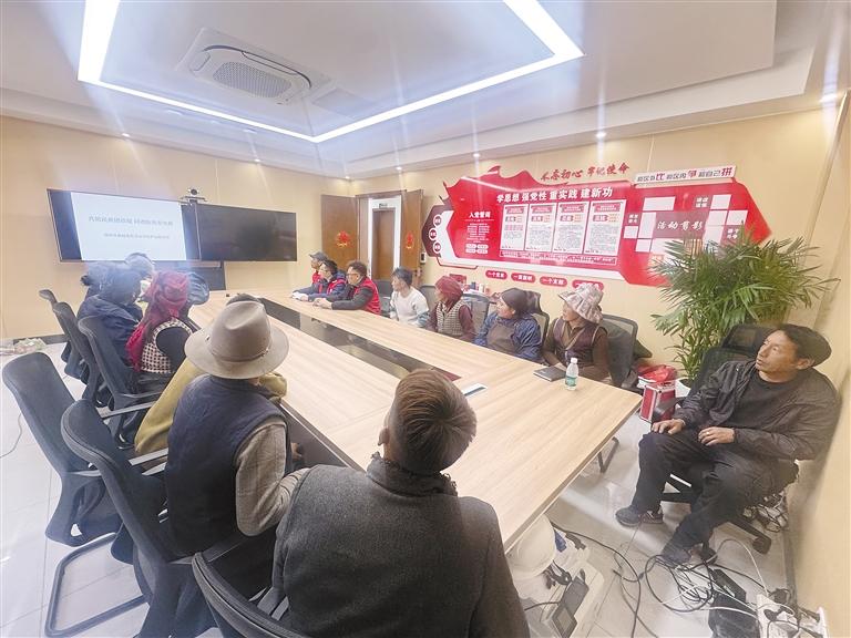 圖為國網(wǎng)西藏超高壓公司組織黨員服務(wù)隊向村民講解防汛減災(zāi)知識。記者 盧文靜 攝