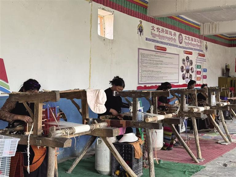 時光回溯到2002年,嘎日與格桑創(chuàng)立合作社時,僅靠12名村民手工編織傳統(tǒng)邦典,年銷售額不足10萬元?!澳菚r候連染料錢都要精打細算?!备氯栈貞浀?。2011年格桑去世后,13歲起就跟著母親學藝的旦增卓嘎接過重擔——合作社對她而言,是童年的記憶、是父母的心血,更是她的一方天地。