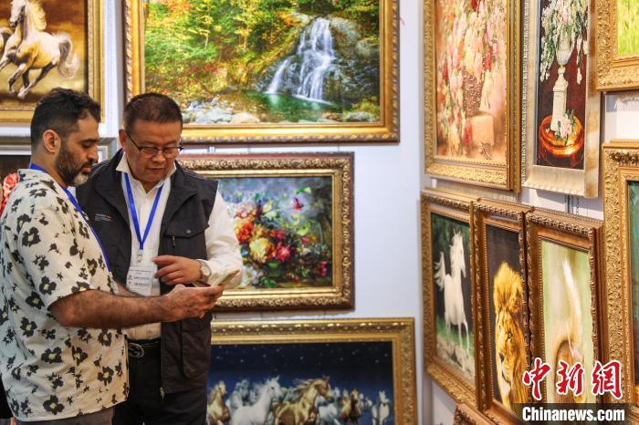 圖為來(lái)自巴基斯坦的參展商在擺放地毯。中新社記者 薛蒂 攝
