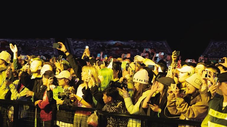 夕陽為舞臺鍍上金邊時,ONER男團(tuán)的表演引粉絲尖叫,眾人舉相機(jī)記錄瞬間。夜幕降臨,疏星如碎鉆閃爍,帶著涼意的山風(fēng)擋不住熱情——觀眾裹衣依偎,隨音符搖擺。線上舞臺同步直播,Easy、登真尼珍等藝人讓場外樂迷共享盛宴。