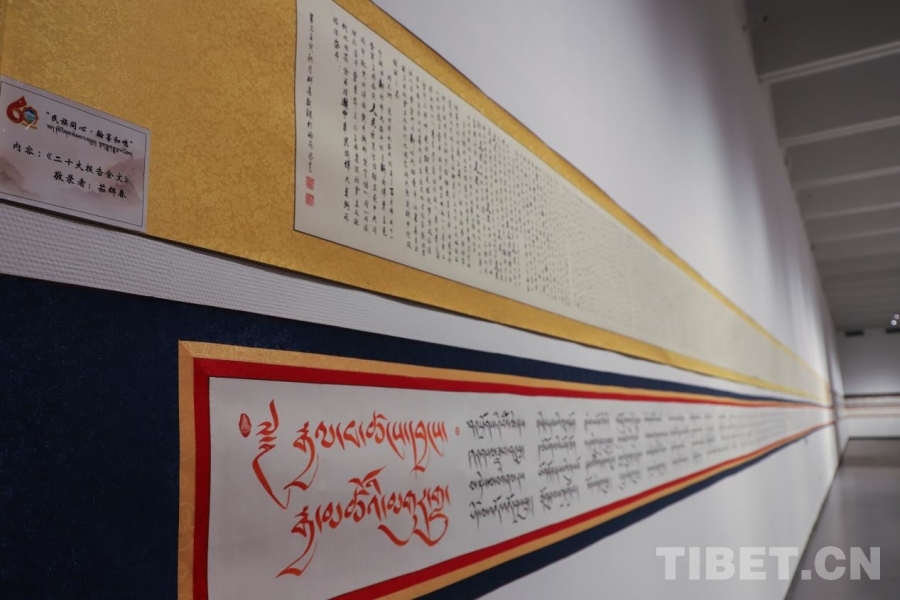 中國西藏網訊 近日,由中共林芝市委員會宣傳部、西藏書法家協(xié)會主辦的“民族同心·翰墨和鳴”漢藏書法長卷作品藝術展正在西藏美術館展出。展覽面向市民開放,將展出至1月底。