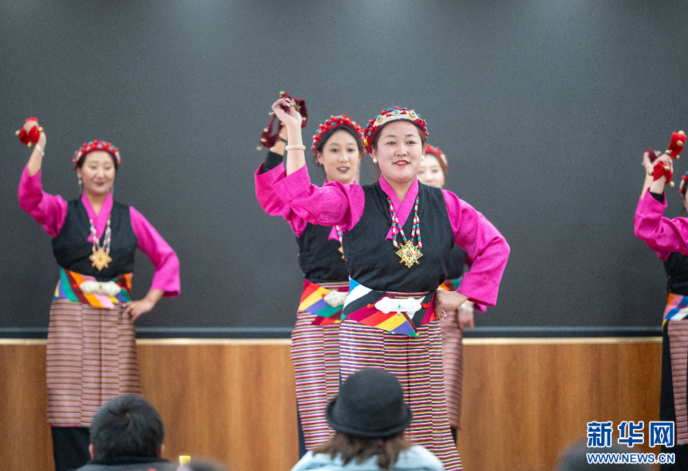 1月16日,社區(qū)文藝隊(duì)在表演節(jié)目。新華網(wǎng) 旦增努布 攝