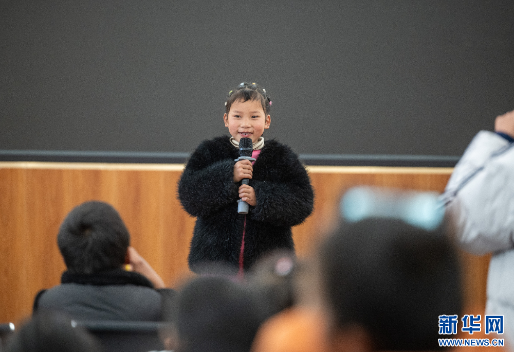 1月16日,一名小朋友在文藝匯演上唱歌。新華網(wǎng) 旦增努布 攝