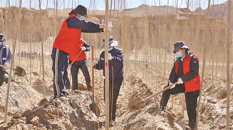 春風(fēng)拂高原,植樹正當(dāng)時。連日來,西藏各地?fù)屪ゴ杭驹炝贮S金期開展義務(wù)植樹活動,以實(shí)際行動為雪域高原添綠增彩。