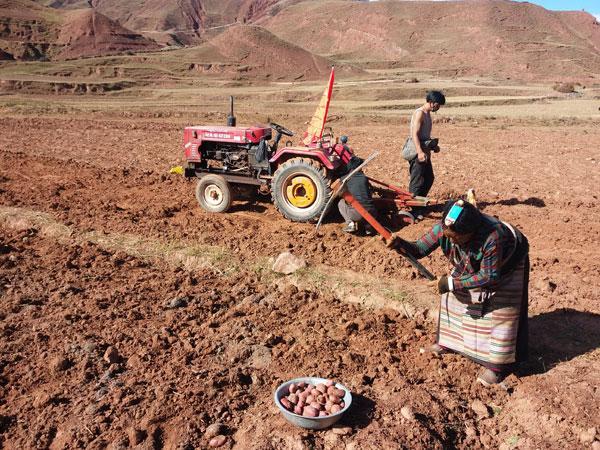 在充分調(diào)研的基礎(chǔ)上,嘎瑪澤加從本村實(shí)際出發(fā),積極爭取項(xiàng)目、資金支持,于2014年起牽頭在全村推廣紅土豆和藍(lán)青稞特色產(chǎn)業(yè)種植工作。經(jīng)過不斷努力,成功將覺恩村紅土豆種植面積擴(kuò)大到1200畝、藍(lán)青稞1000畝,這兩項(xiàng)種植業(yè)每年為群眾創(chuàng)收430萬元,使群眾看到了發(fā)展特色種植產(chǎn)業(yè)帶來的實(shí)實(shí)在在的經(jīng)濟(jì)效益。
