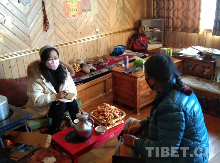 中國西藏網(wǎng)訊 3月11日,在四川省甘孜藏族自治州理塘縣村戈鄉(xiāng)芒康村,駐村工作隊一邊宣傳疫情防控知識,一邊開展脫貧攻堅排查工作。