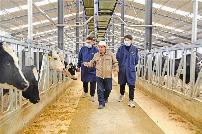 圖為近日,達孜區(qū)高標準良種奶牛養(yǎng)殖示范中心畜牧獸醫(yī)姜玉亮帶領(lǐng)新員工巡檢牛場。記者 李洲 攝