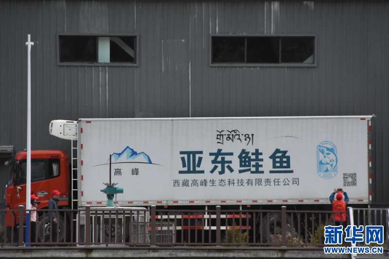 9月13日拍攝的帶有亞東鮭魚標(biāo)識(shí)的卡車。新華網(wǎng) 張宸 攝