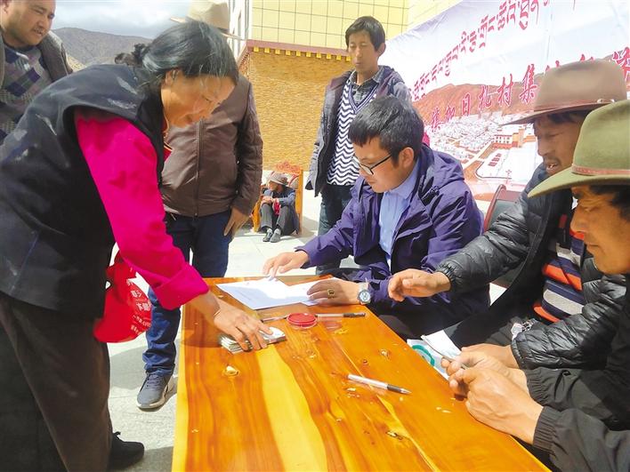 圖為洛隆縣孜托鎮(zhèn)加日扎村集體產(chǎn)業(yè)效益分紅現(xiàn)場。記者 陳志強 攝
