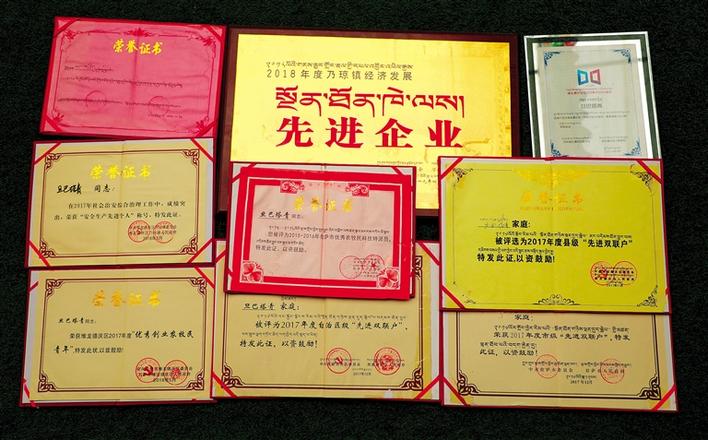 旦巴塔青榮獲的各種榮譽(yù)證書(shū)。