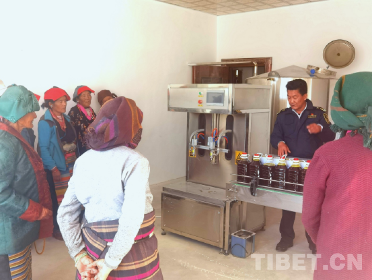 中國西藏網(wǎng)訊 利用剛學(xué)會的技術(shù),西藏自治區(qū)日喀則市謝通門縣卡嘎鎮(zhèn)的農(nóng)牧民群眾喜笑顏開地提走了機械化生榨菜籽油。