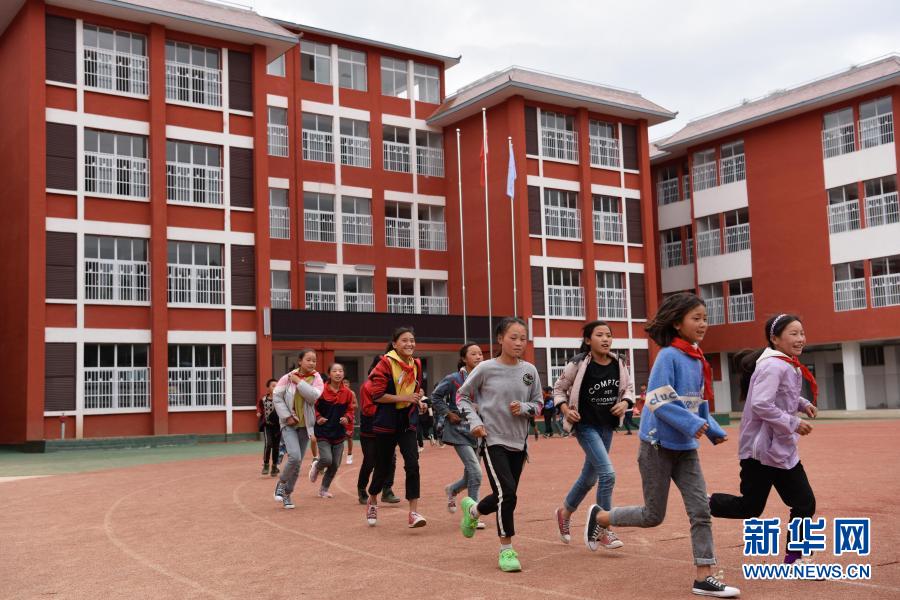 四川省布拖縣阿布澤魯小學(xué)的學(xué)生們?cè)谛虏賵錾吓懿剑?月22日攝)。新華社記者 胥冰潔 攝