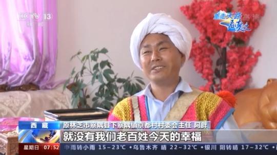 原林芝市察隅縣下察隅鎮(zhèn)京都村村委會(huì)主任 阿胖:沒有共產(chǎn)黨,就沒有我們老百姓今天的幸福。感謝習(xí)總書記,非常感謝,帶給我們老百姓這么好的一個(gè)產(chǎn)業(yè),這么好的一個(gè)政策。作為致富帶頭人,我下一步一定要把村民帶好,走上去一起富起來。