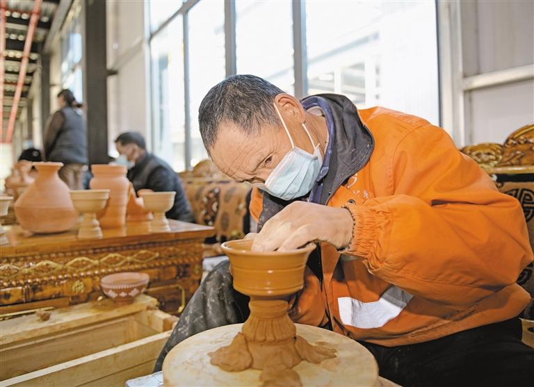 圖為拉薩市墨竹工卡縣工卡鎮(zhèn)塔巴村村民在制陶。記者 潘多 攝