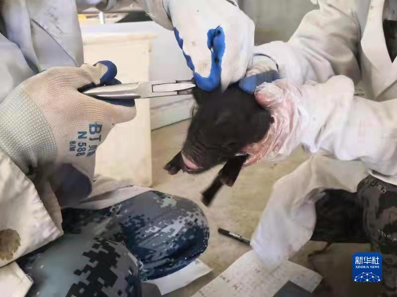 圖為工作人員給仔豬打耳缺編號。(受訪者供圖)