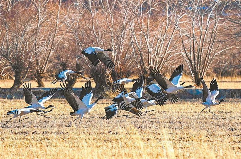雅魯藏布江中游河谷黑頸鶴自然保護(hù)區(qū),是西藏“一江兩河”流域以國(guó)家一級(jí)保護(hù)動(dòng)物黑頸鶴為主要保護(hù)對(duì)象的國(guó)家級(jí)自然保護(hù)區(qū)。日喀則市拉孜縣到南木林縣之間的雅魯藏布江中上游河谷,是黑頸鶴越冬棲息最為集中的區(qū)域之一。據(jù)最新調(diào)查統(tǒng)計(jì),在日喀則市境內(nèi)越冬的黑頸鶴成鳥數(shù)8400余只,比保護(hù)區(qū)建立初期數(shù)量增長(zhǎng)了3000余只。