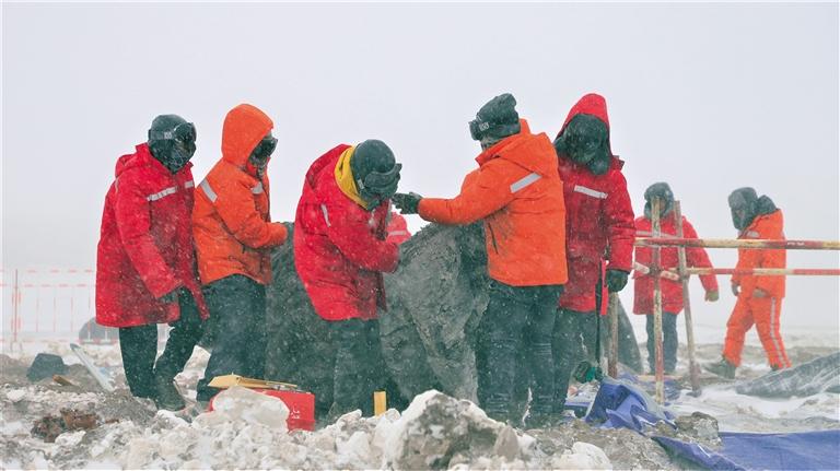 電力建設(shè)者在海拔4600多米的阿里聯(lián)網(wǎng)施工現(xiàn)場。圖由國網(wǎng)西藏電力有限公司提供