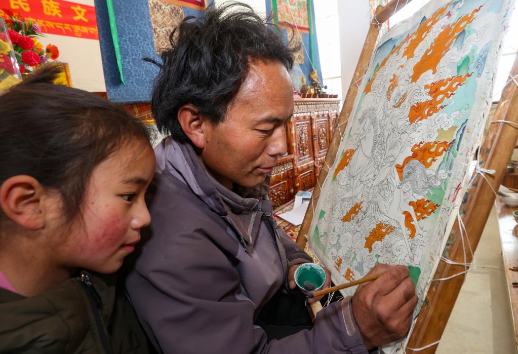 西繞尼瑪認為,唐卡繪制不僅要繼承傳統(tǒng)技藝,還要注重時代創(chuàng)新。“現在生活這么好,我們要用創(chuàng)新作品來記錄這個時代。”他說,傳承傳統(tǒng)技藝和將時代元素融入創(chuàng)作中,對唐卡技藝來說就像左手和右手一樣重要。