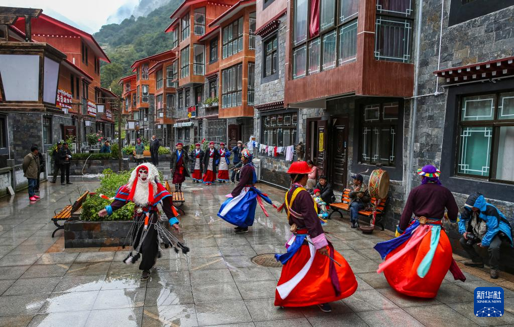 一排排整齊劃一的房屋前,門巴族同胞們正在表演“山南門巴戲”,他們載歌載舞、歡聲笑語。門巴文化獨具特色,山南門巴戲距今已有200余年歷史,劇情豐富、有聲有色,被列入國家級非物質(zhì)文化遺產(chǎn)名錄。