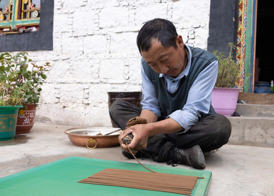 格桑次仁家里世代都會(huì)制作藏香,他和哥哥自小跟隨父親學(xué)習(xí)藏香制作技藝,哥哥次仁多吉如今也是這門(mén)技藝的國(guó)家級(jí)代表性傳承人?!斑@幾年,在政府的扶持下,家里購(gòu)置了藏香制作輔助機(jī)器,在保證藏香原料品質(zhì)不變的基礎(chǔ)上,得以實(shí)現(xiàn)量產(chǎn)。同時(shí),我們開(kāi)拓線上銷(xiāo)售渠道,收入也隨之增加了?!备裆4稳收f(shuō),家里不僅翻新了房屋,還添置了小貨車(chē)、私家車(chē),日子過(guò)得紅紅火火。