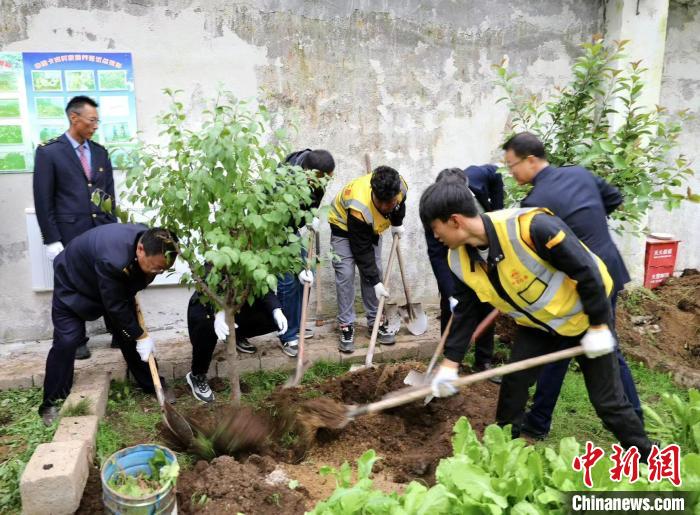 圖為拉薩基礎(chǔ)設(shè)施段黨員代表在援建溫室大棚植樹?!●R生明 攝