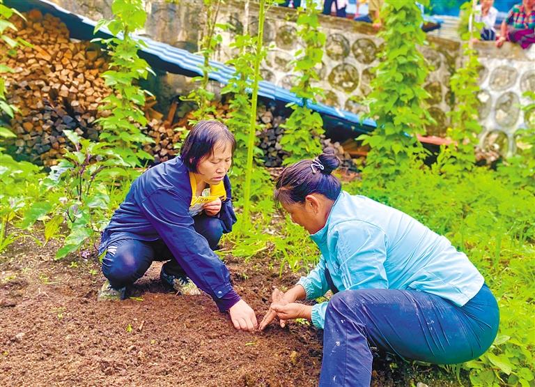 技術(shù)員(左一)向群眾傳授辣椒種植技術(shù)。記者 王敏 通訊員 郎玲 攝