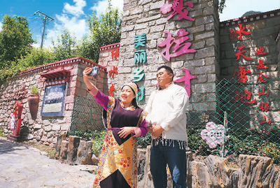 村民巴珍家的藏式小樓,院內(nèi)鮮花簇簇、室內(nèi)溫暖如春,二樓的3個房間租給旅游企業(yè)用作客房?!耙荒攴孔馐杖胗?萬多元,我在旅游公司打工,月工資4000多元,一年收入七八萬元,關(guān)鍵是工作生活都在自己村里,簡直是太方便了。”巴珍很滿意現(xiàn)在的生活。旦增達(dá)杰介紹,光房屋租金一項,村民戶均年增收3萬多元。