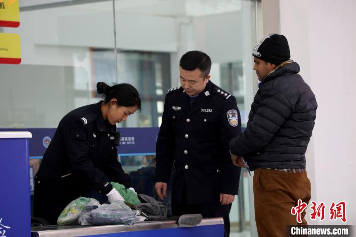 1月30日,在樟木口岸負(fù)責(zé)旅檢通關(guān)等工作的執(zhí)勤一隊民警們吃過早飯,在副隊長段秋宇的帶領(lǐng)下,正在整理著裝,檢查驗訖章,準(zhǔn)備開始一天的勤務(wù)工作。安排好勤務(wù)的副隊長段秋宇帶領(lǐng)其他民警急忙趕往口岸限定區(qū)的商戶,開展排查工作。