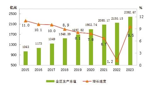 圖1 2015-2023年全區(qū)生產(chǎn)總值及其增長(zhǎng)速度