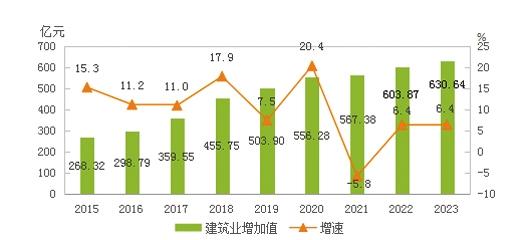 圖4 2015-2023年建筑業(yè)增加值及其增長(zhǎng)速度