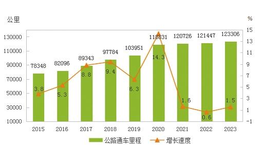 圖8 2015-2023年公路通車?yán)锍碳捌湓鲩L(zhǎng)速度