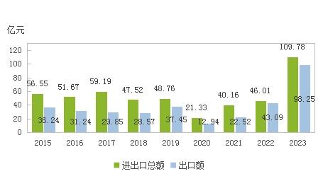 圖7 2015-2023年貨物進(jìn)出口總額