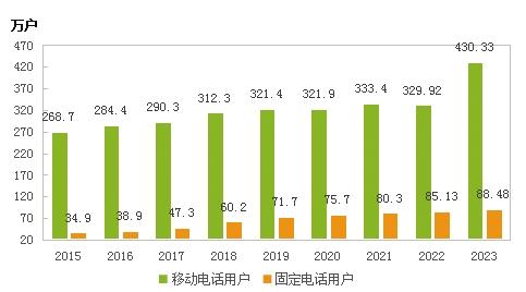 圖9 2015-2023年電話用戶數(shù)
