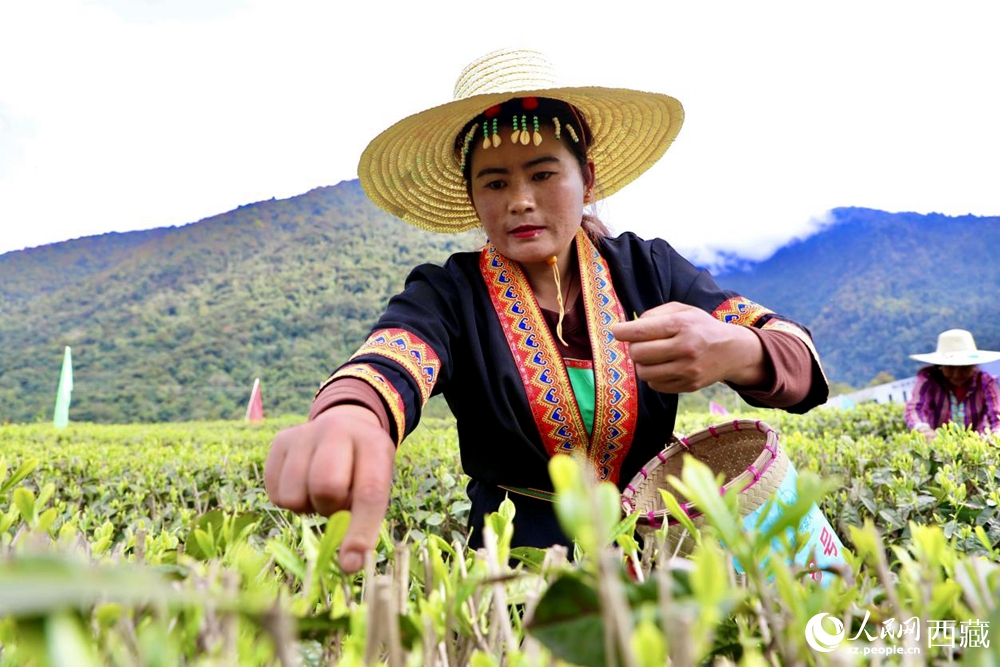 墨脫縣門巴族茶農(nóng)采摘茶葉。人民網(wǎng)記者 次仁羅布攝