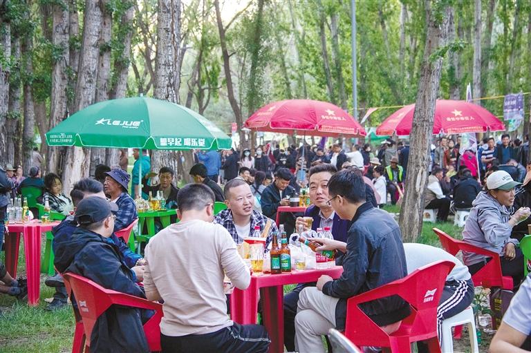 圖為在啤酒林卡促銷(xiāo)活動(dòng)上,市民在戶(hù)外盡情享受盛夏。