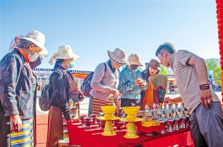 一張艷麗奪目的藏式卡墊、一只美觀透亮的玉石碗、一把精雕細(xì)琢的六弦琴、一杯醇香味濃的雞爪谷酒、一套異域風(fēng)情的尼泊爾服飾、一包沁人心脾的香料……在日喀則高原農(nóng)特產(chǎn)品及尼泊爾特色產(chǎn)品展示展銷(xiāo)活動(dòng)上,琳瑯滿(mǎn)目的本土優(yōu)質(zhì)農(nóng)特產(chǎn)品與獨(dú)具特色的尼泊爾產(chǎn)品,吸引了大量市民游客逛攤選購(gòu),一幅繁忙景象。