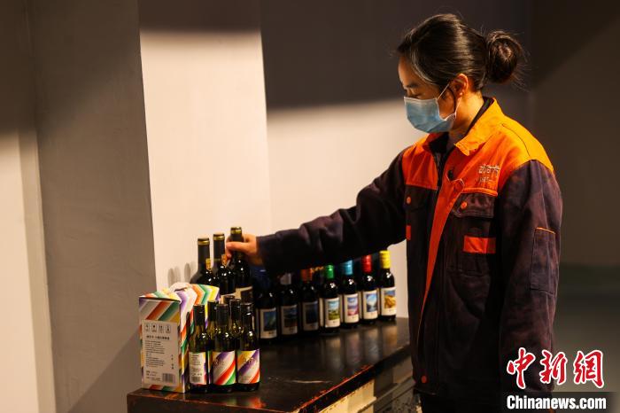 芒康縣在種植葡萄方面有著悠久的歷史,因干熱河谷氣候優(yōu)勢(shì)明顯,紫外線(xiàn)強(qiáng)、光線(xiàn)充足,適宜大面積栽種無(wú)公害綠色釀酒葡萄。圖為工作人員檢查瓶?jī)?chǔ)區(qū)葡萄酒狀態(tài)。中新社記者 薛蒂 攝