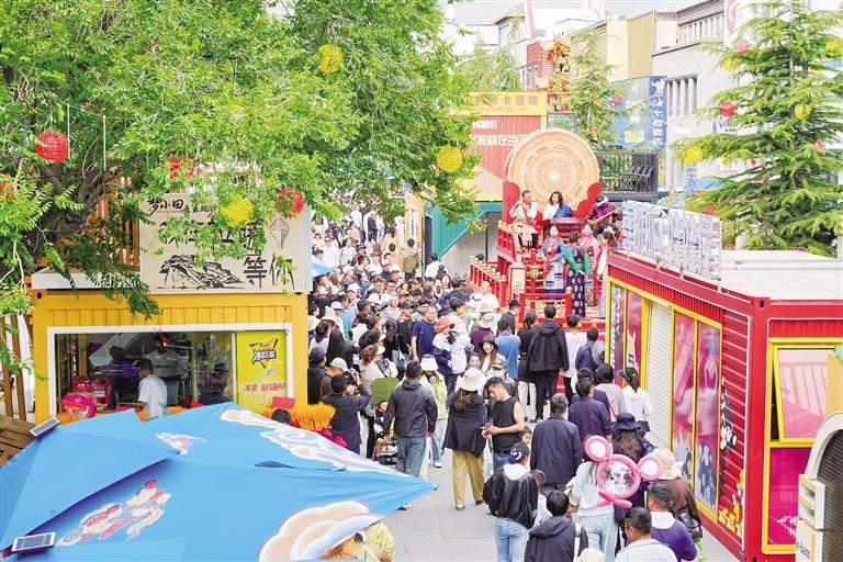 “拉薩不夜城”位于宇拓路的核心地段,銜接布達(dá)拉宮與大昭寺,全長(zhǎng)370米。該項(xiàng)目以“文旅商融合·新業(yè)態(tài)新場(chǎng)景”為發(fā)展定位,緊扣“潮流煙火氣”主題,采用對(duì)稱式街區(qū)布局,精心打造集“夜游、夜購(gòu)、夜宴、夜娛”于一體的夜間經(jīng)濟(jì)新地標(biāo)。營(yíng)業(yè)時(shí)間為7月15日至10月31日每日10:00-24:00,設(shè)有169個(gè)經(jīng)營(yíng)點(diǎn)位,涵蓋創(chuàng)意集裝箱、定制餐車(chē)、特色經(jīng)營(yíng)屋及開(kāi)放式攤位,引入西藏非遺精品、特色文創(chuàng)產(chǎn)品、特色燒烤、高原精釀啤酒、潮玩互動(dòng)等多元化業(yè)態(tài)。