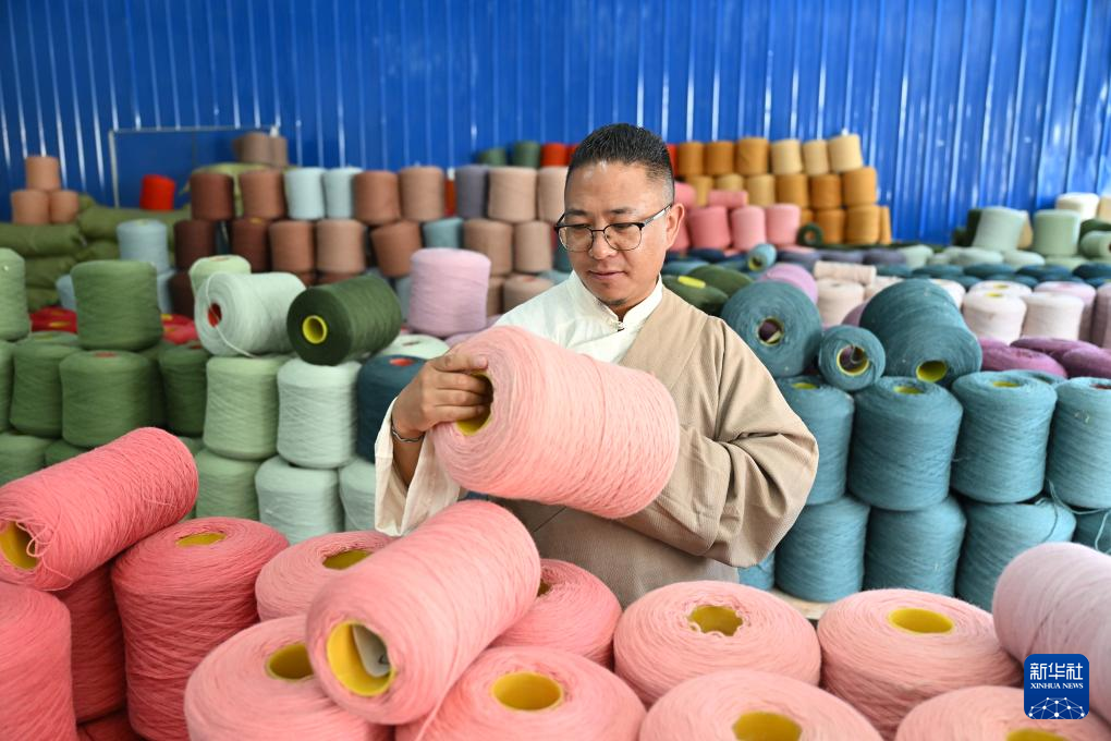 7月18日,江孜藏毯文化發(fā)展有限責(zé)任公司創(chuàng)始人旦增稱來在倉庫里檢查染色后的紗線。新華社記者 李鑫 攝