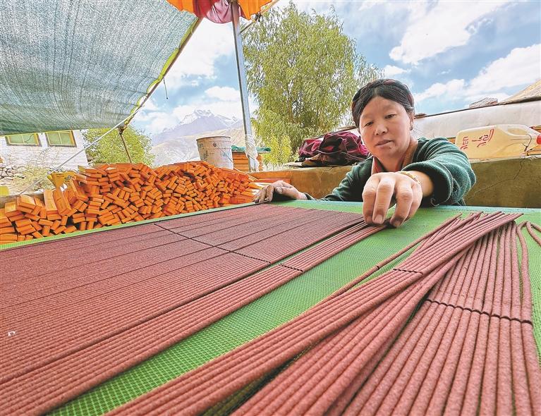 圖為工人在晾曬制作好的藏香。記者 白瑪澤旺 次仁平措 攝影報道