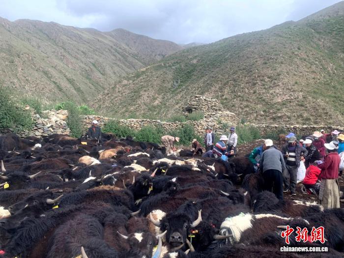 圖為特日村股份合作社人員在清點(diǎn)牧場(chǎng)牦牛。曲杰 供圖